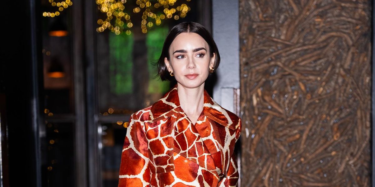 Lily Collins, principală actriță a seriei „Emily in Paris”, a continuat să promoveze sezonul viitor al producţiei printr‑o apariţie îmbrăcată în stilul maximalist al personajului său. În cadrul evenimentului, Lily Collins a purtat un coat‑dress din mătase cu imprimeu de girafă în nuanţe de arămiu, o pereche de stilettos bruni Giuseppe Zanotti și o geantă Fendi în violet sequinat, confirmându‑se ca un punct de referinţă în moda televiziunii.